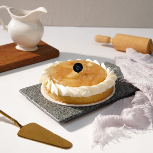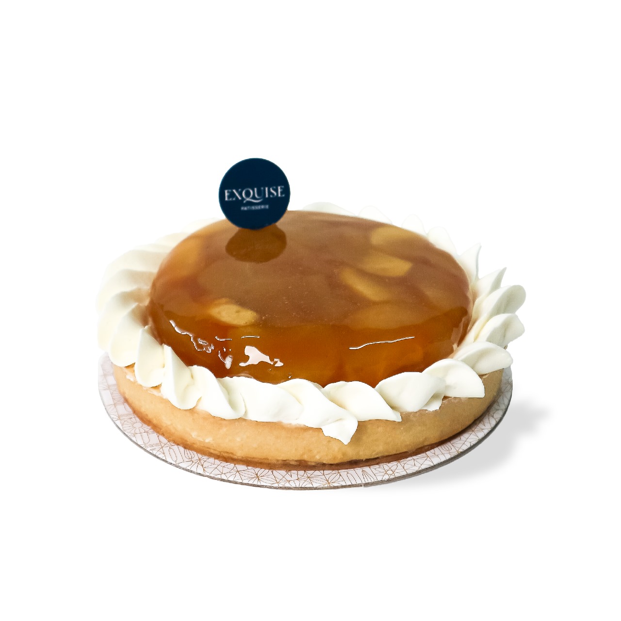 - Apple Tatin, Belgian Whipped White Chocolate, Vanilla Sponge, Sable.