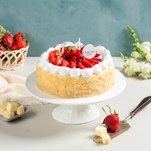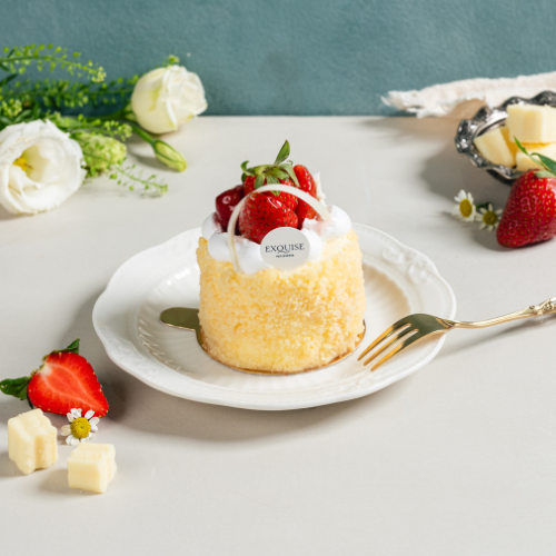 - NY Cheese Cake, Fresh Strawberry, Crunchy Base, Vanilla Sponge, Chantilly Cream