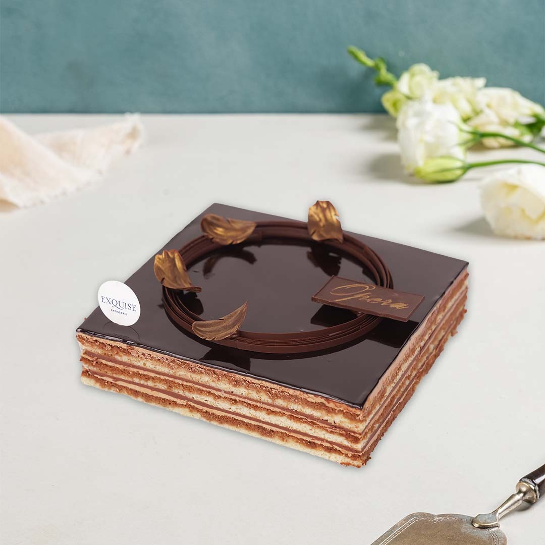 - Almond Jaconde, Chocolate Ganache, Coffee Buttercream, Coffee syrup